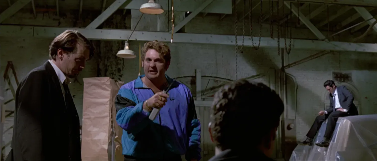 Il battibecco tra Joe e Mr. White è comico ma fondamentale: Mr. White mostra una vena di ribellione. Joe, autoritario e insistente, si sente minacciato da un gesto apparentemente piccolo: non riavere la rubrica. Si crea una mini-dinamica di potere che anticipa il confronto finale. Questo scambio ha la stessa energia del climax finale nel magazzino. È come se Tarantino usasse un momento ridicolo per allenarci a riconoscere le dinamiche di scontro tra questi uomini armati e orgogliosi.