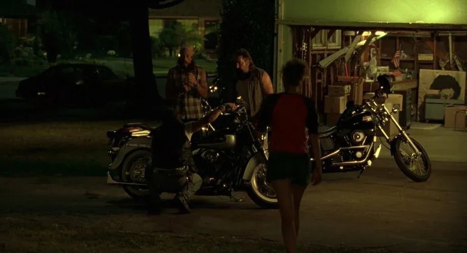 Questo scambio tra Erin e George è uno dei momenti più rivelatori di Erin Brockovich, perché in pochissimi minuti riesce a raccontare due personaggi, il loro passato e il tipo di relazione che potrebbe nascere tra loro. La scena parte da un conflitto concreto e quotidiano: il rumore, l’invasione dello spazio privato. Erin esce di casa di notte, stanca, già sulla difensiva. Il modo in cui si avvicina all’orecchio di George e lo chiama (“Ehy!”) è fisico, diretto, quasi aggressivo: Erin non chiede attenzione, se la prende. Questo è perfettamente coerente con il personaggio interpretato da Julia Roberts: una donna che non ha più tempo per mediazioni inutili. George, invece, entra in scena come elemento caotico ma non minaccioso. Sta “facendo rumore da fermo”, dettaglio che lo caratterizza subito: è un uomo un po’ irresponsabile, infantile, ma non cattivo. Aaron Eckhart lo interpreta con sorpresa genuina e curiosità immediata. Il suo primo “Ciao” non è difensivo, è interessato. George non reagisce all’attacco: prova a trasformarlo in incontro.