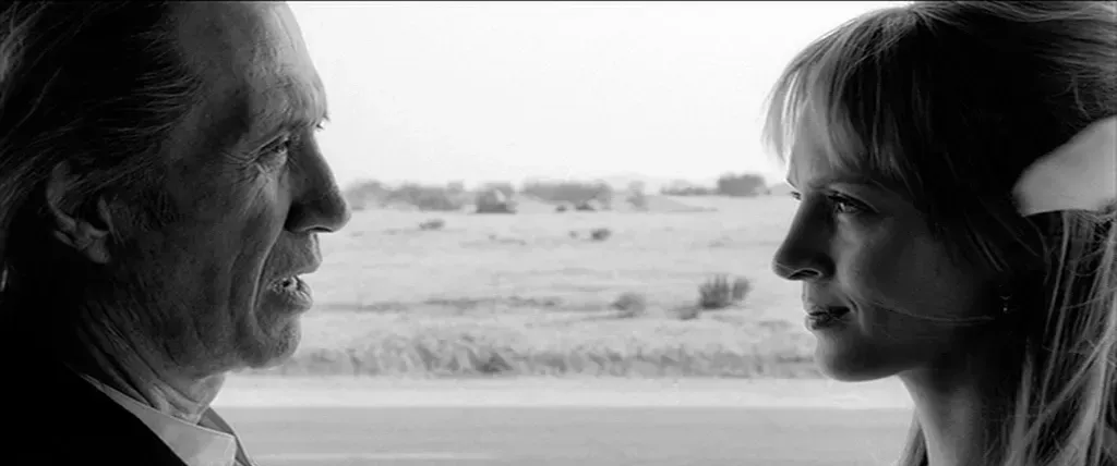 Questo dialogo apre Kill Bill: Volume 2 con una scelta radicale: niente violenza, solo parole. Tarantino ci porta prima della strage, quando tutto è ancora possibile. È una scena di intimità sospesa, costruita come un duello emotivo. Fin dalle prime battute, Bill (David Carradine) entra in scena con un controllo totale: «Io sono io.» Non risponde, afferma la propria onnipotenza. Beatrix (Uma Thurman) chiede “perché sei qui?” più volte: è la domanda che non trova risposta perché Bill è lì per essere Bill. Il dialogo sembra gentile, persino tenero, ma ogni frase è una lama sotto la seta: Bill ironizza, sminuisce, sorride. Beatrix risponde con affetto, ma si difende.