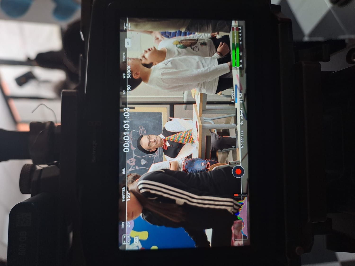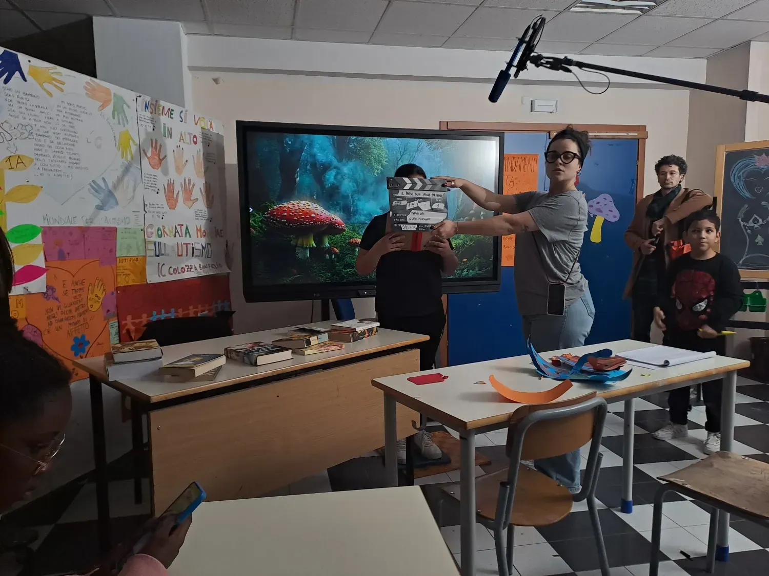 Gli alunni hanno collaborato fianco a fianco con professionisti del mondo dello spettacolo, tra cui gli attori Stefania Blandeburgo e Gigi Borruso, guidati dalla regia di Fabrizio Lupo, affiancato dai ragazzi dell’istituto. Un’esperienza che ha trasformato la scuola in un vero laboratorio creativo, dove telecamere, ciak, prove di recitazione e brainstorming si sono intrecciati alla quotidianità scolastica.